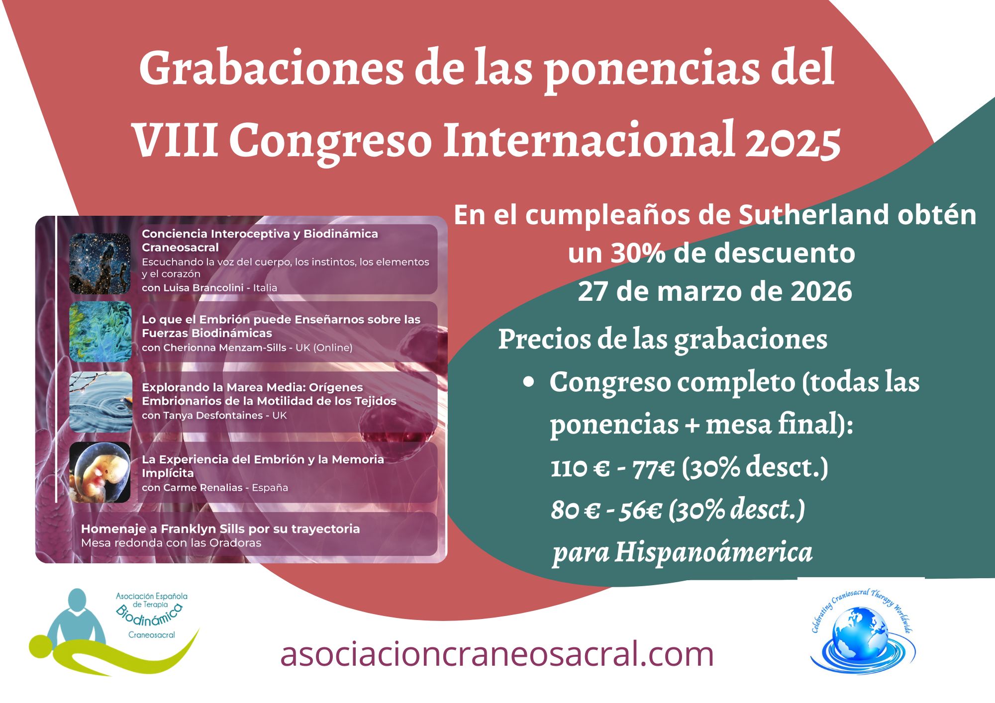 - Precio del Congreso (todas las ponencias + mesa final): 110€ / 80€ para Hispanoamérica